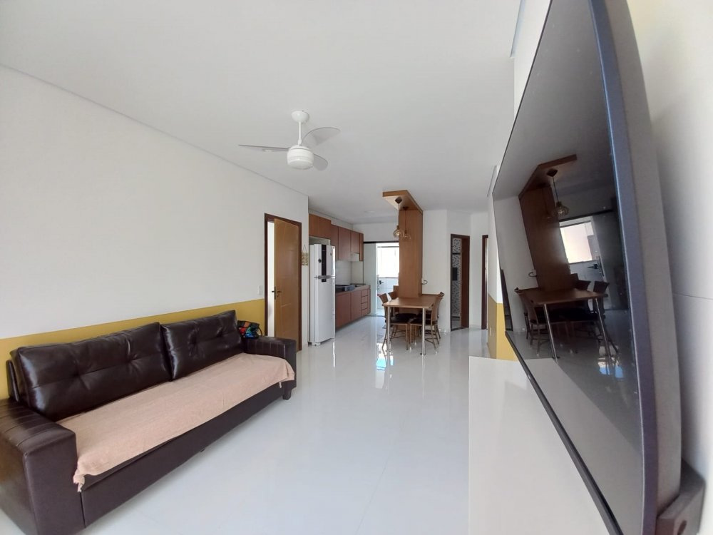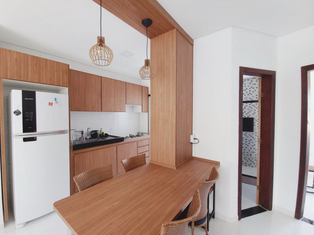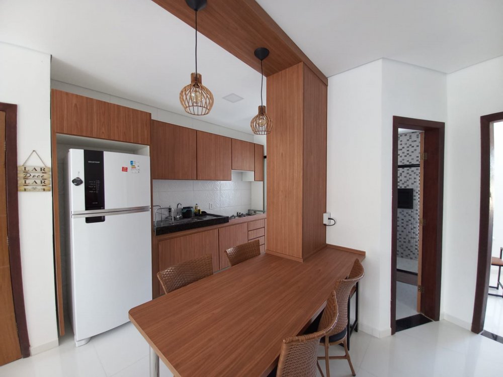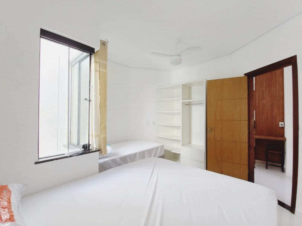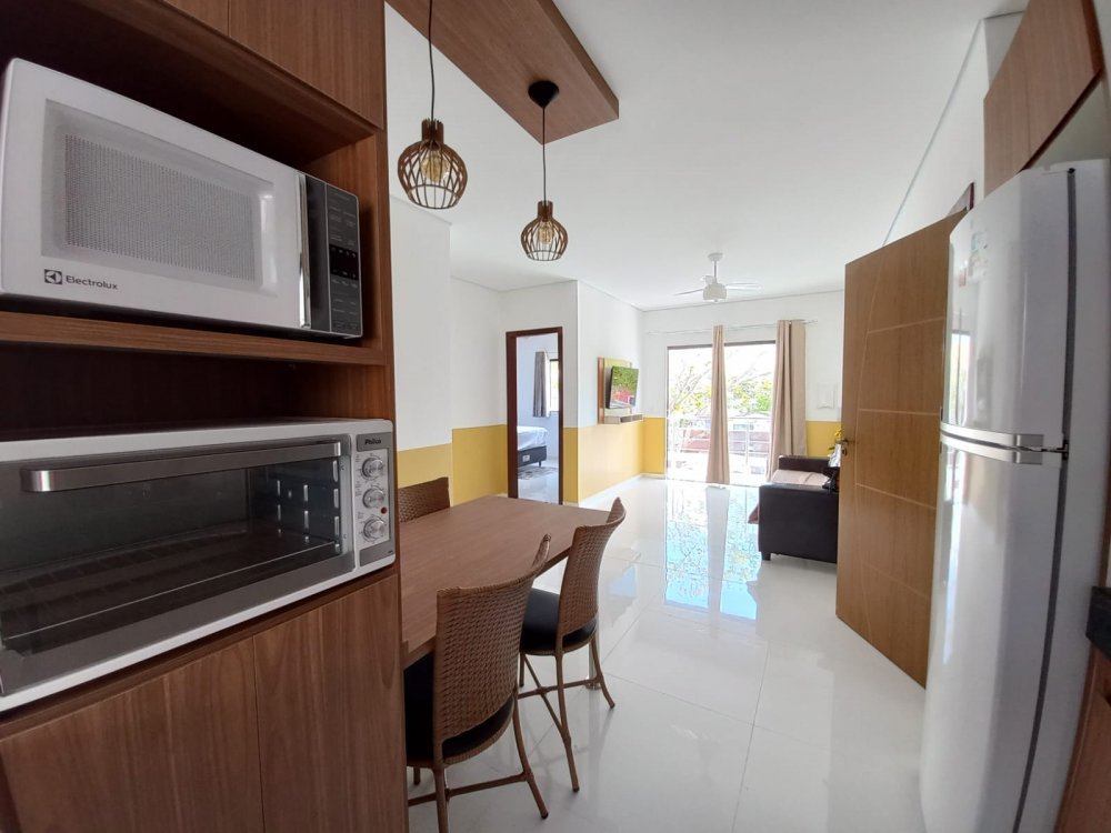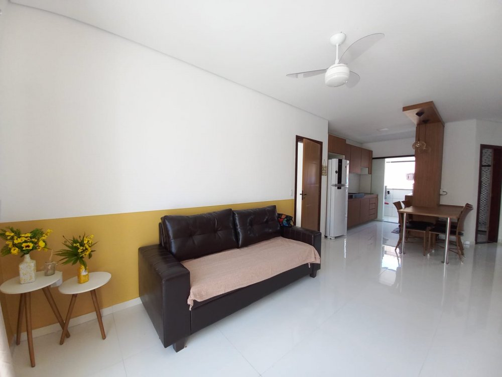 Apartamento no piso superior com 3 quartos com ar condicionado, sendo 1 suite, um banheiro social, mobiliado, com internet, TV, sala, cozinha, varanda, em condomínio com piscina, churrasqueira e vaga de carro, 3 minutos da Praia de Taperapuan, perto da Barraca do Gaucho.