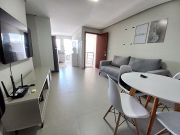 Apartamento de 2 quartos no piso superior, todo mobiliado, com ar condicionado, TV na sala, cozinha completa, Wifi, em condominio com piscina e estacionamento próximo ao La Torre, acomoda até 5 pessoas.