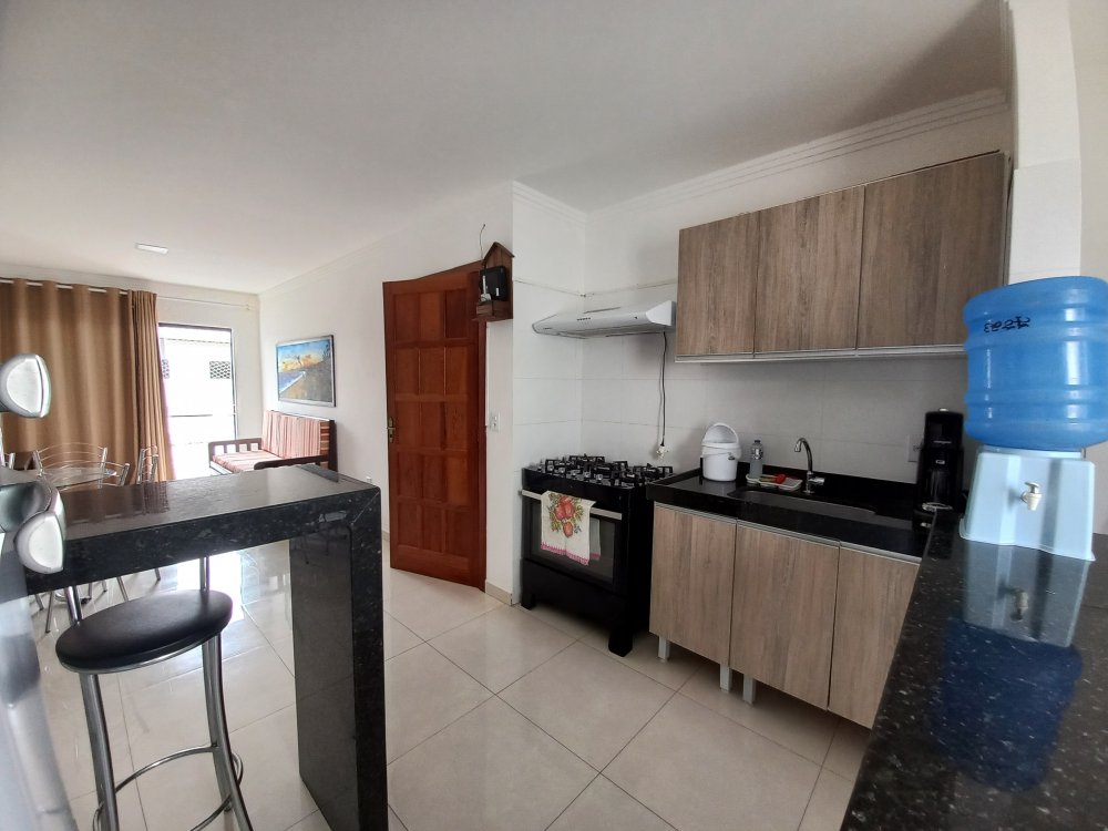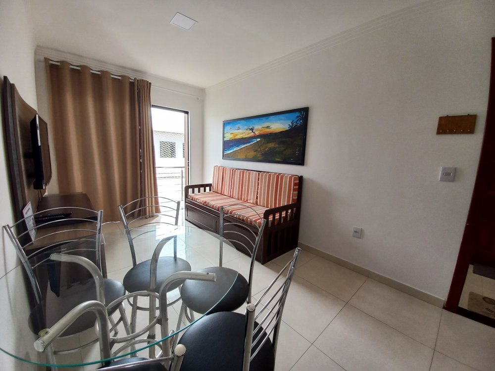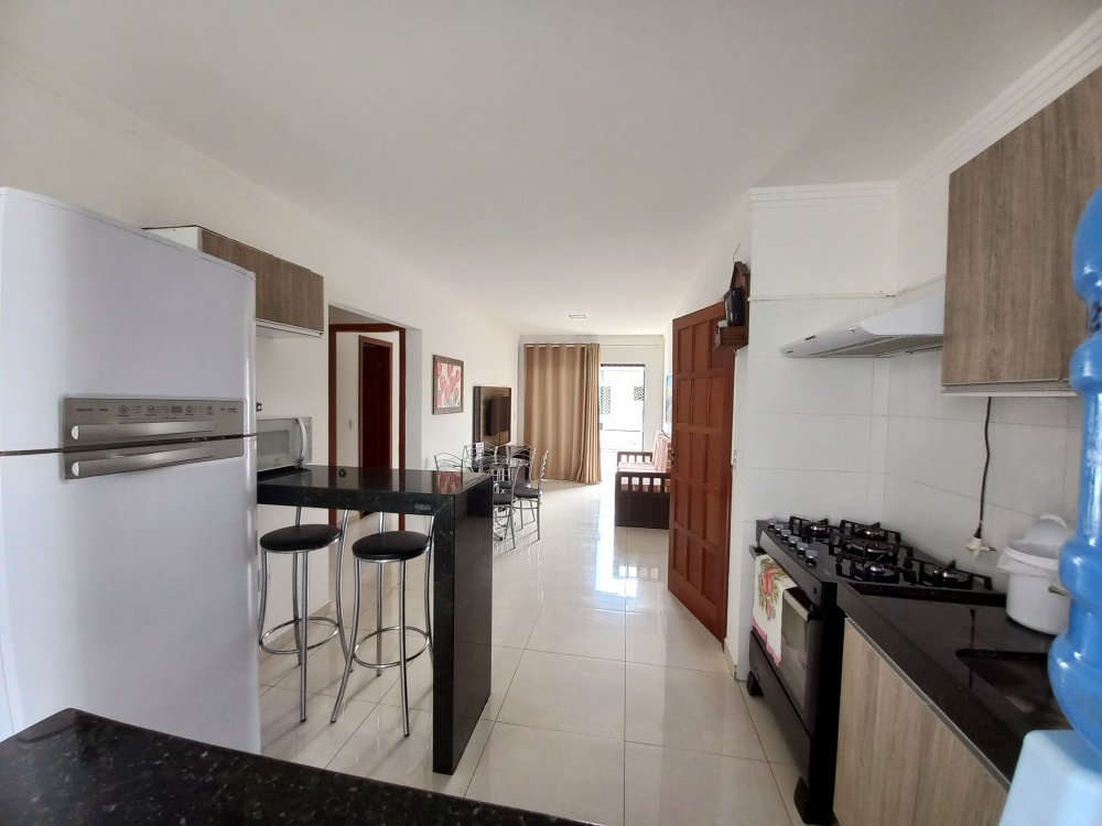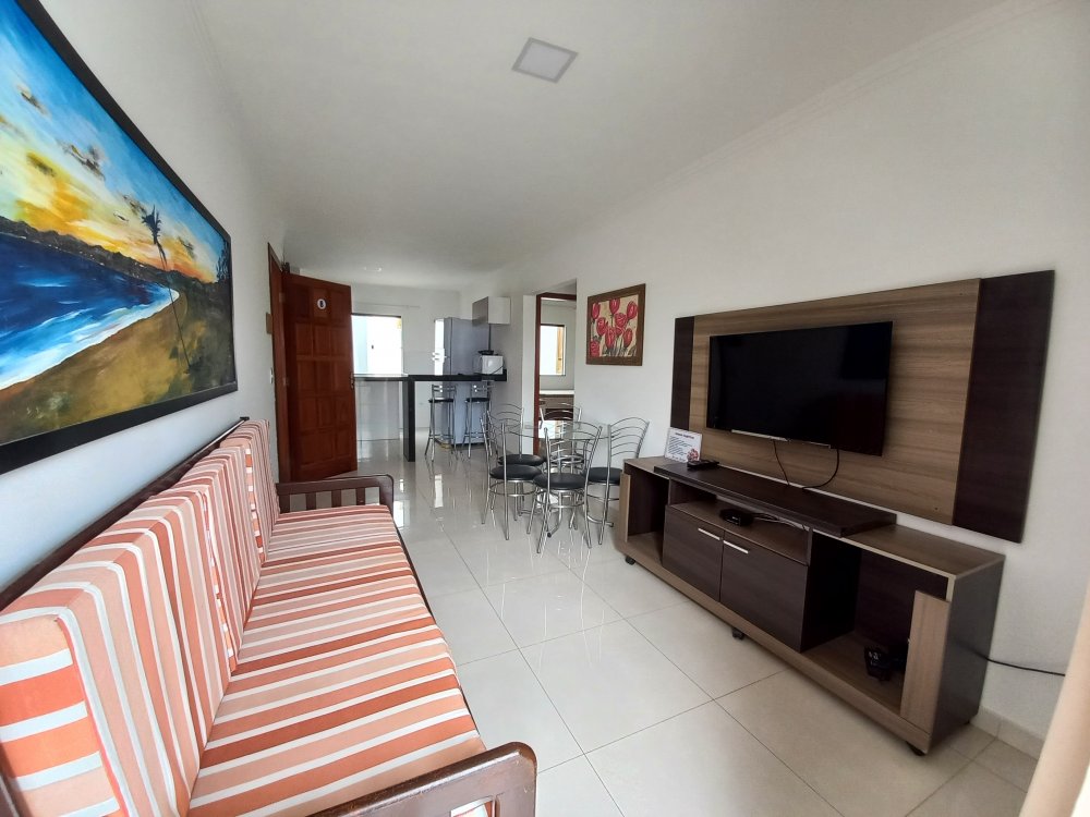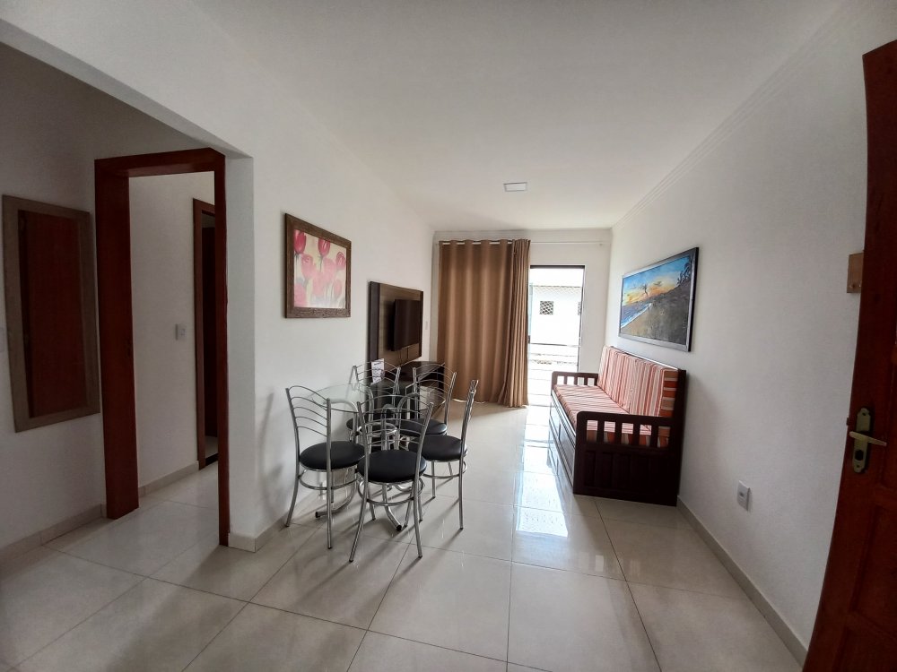 Apartamento com 2 quartos sendo 1 suite, sala, banheiro, cozinha, varanda, no andar superior, para no máximo 6 pessoas, em condominio com piscina e estacionamento, próximo ao Vitoria Regia, supermercados, barracas de praia, etc.