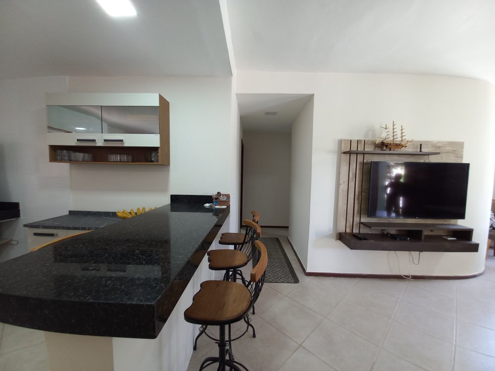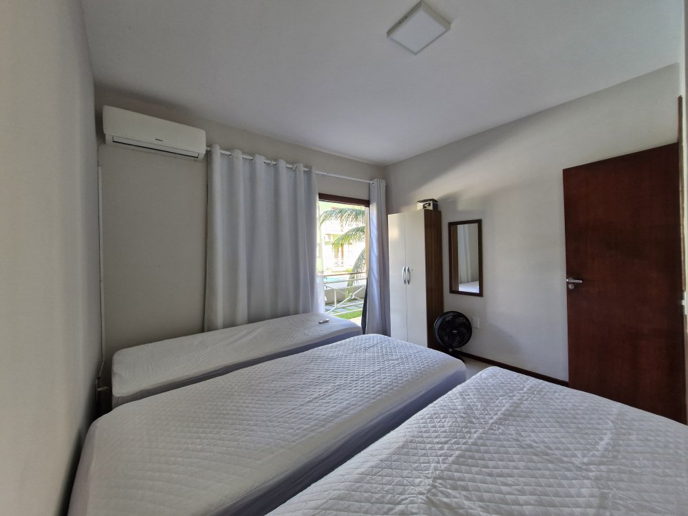 Apartamento de 2 quartos com churrasqueira e area gourmet privativa, sendo 1 suite, piso TERREO, mobiliado, com sala, cozinha, ar condicionados, banheiros, varanda, em condomínio com piscina e vaga de estacionamento, 600M da Praia de Taperapuan