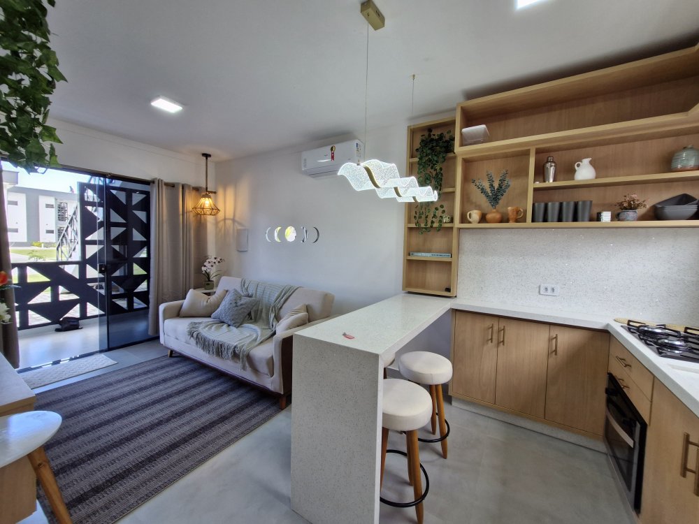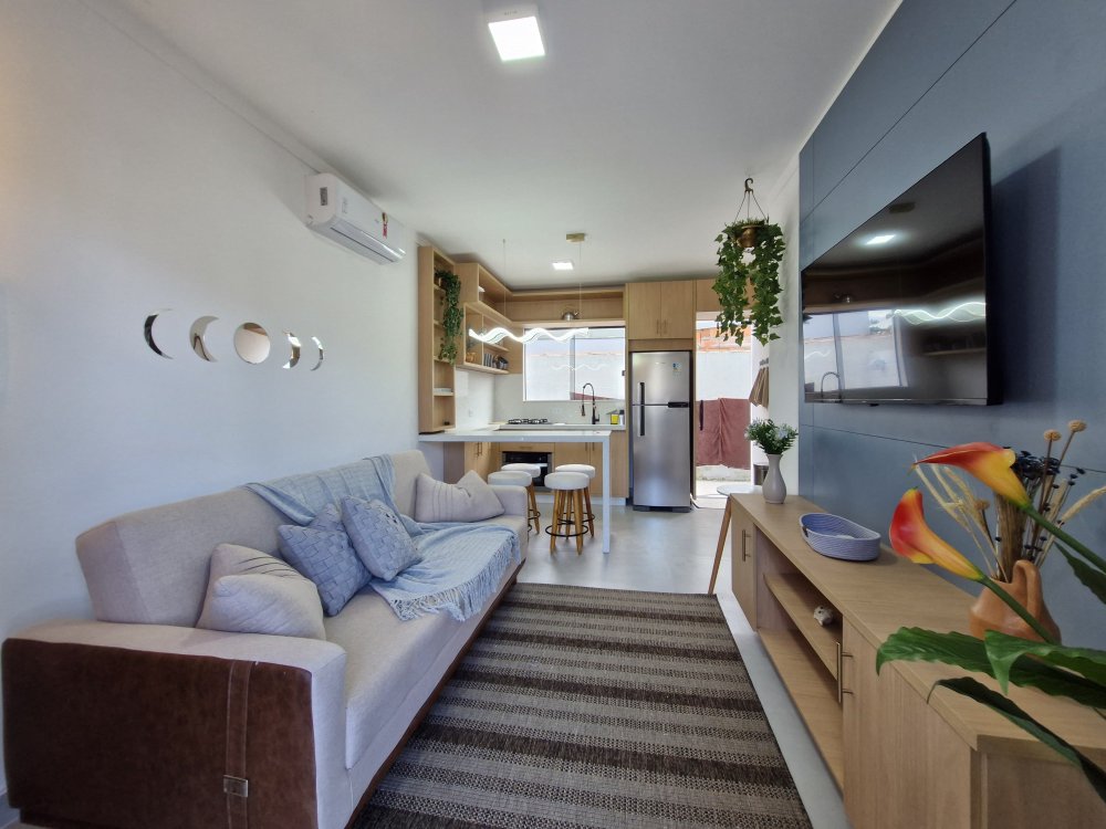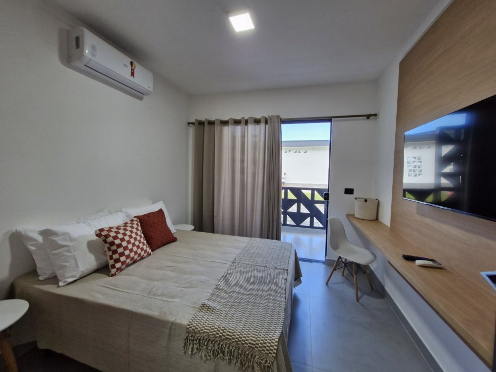 Aconchegante e completo, este apê mobiliado com 1 quarto, banheiro, sala, varanda e cozinha acomoda até 4 pessoas e uma criança com conforto.