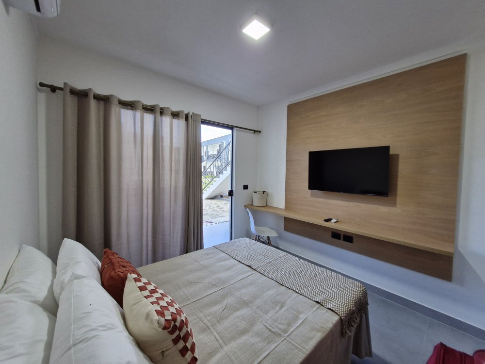 Fica no piso térreo de um condomínio apenas uma quadra da Praia do Mutá, próximo a Barraca do Macuco e do Hibisco.