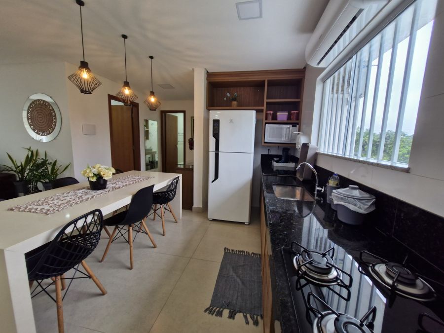 São dpois quartos sendo uma suite, sala, cozinha, varanda com área gourmet privativa com vista para piscina, acomoda até 6 pessoas em camas de casal e solteiro. Para orcamentos informe data de entrada, data de saida e numero de pessoas (adulto e crianca)