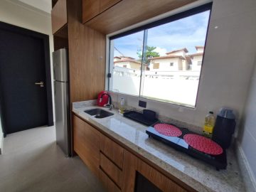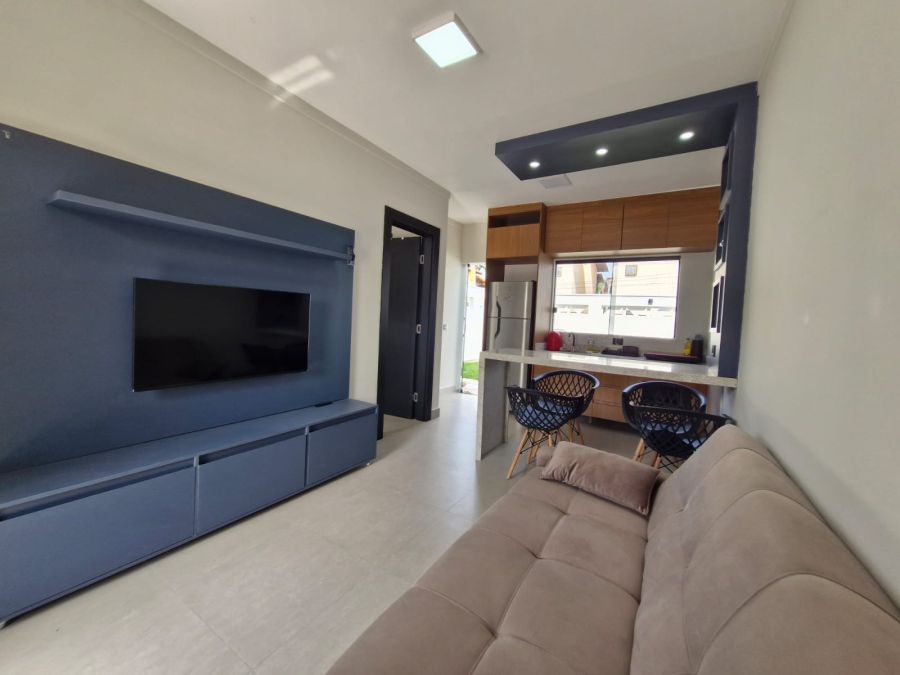 Aconchegante e completo, este apê mobiliado com 1 quarto, banheiro, sala, varanda e cozinha acomoda até 4 pessoas e uma criança com conforto.