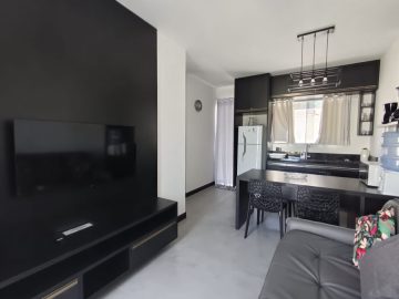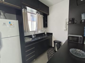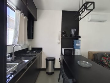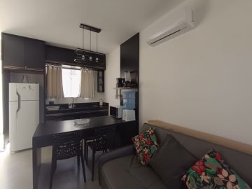 Aconchegante e completo, este apê mobiliado com 1 quarto, banheiro, sala, varanda e cozinha acomoda até 4 pessoas e uma criança com conforto.