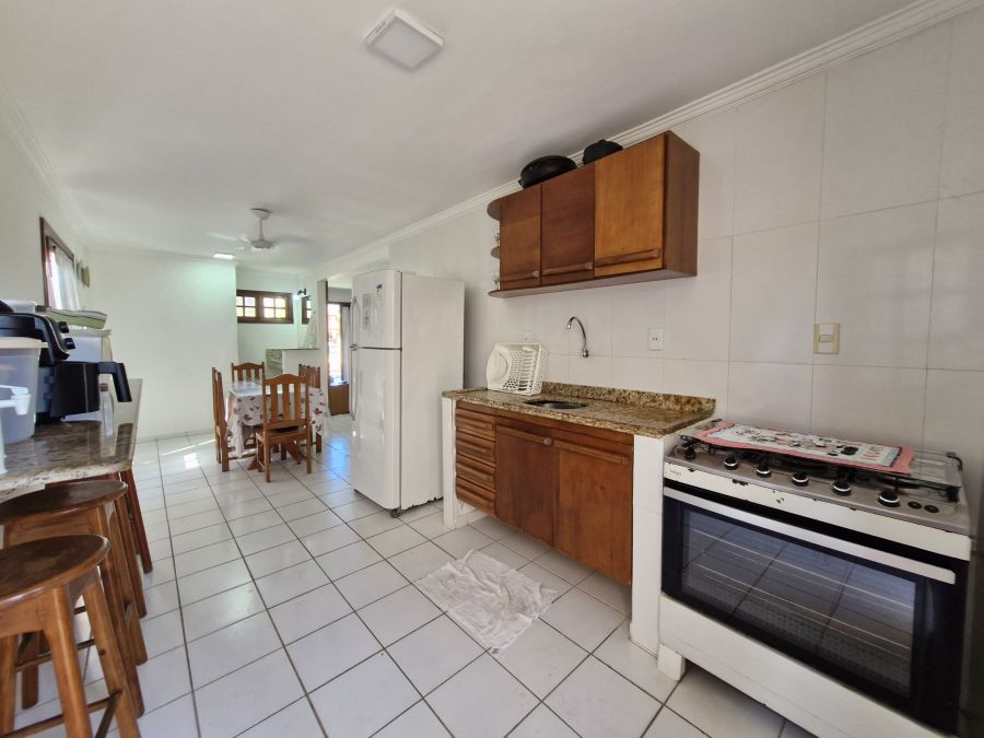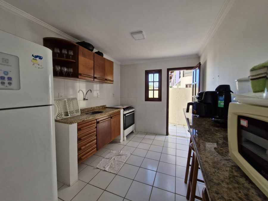 A área íntima é composta por três suítes exclusivas, garantindo total independência e comodidade aos ocupantes. O pavimento social apresenta uma sala de estar integrada, lavabo e uma cozinha plenamente equipada com fogão, geladeira, micro-ondas e utensílios de alta qualidade. O imóvel é entregue totalmente mobiliado, incluindo roupas de cama e sistema de água quente, pronto para atender aos hóspedes mais exigentes.