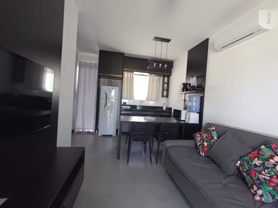 O apartamento conta com 1 dormitório, 1 banheiro, sala e 1 vaga de garagem, sendo entregue totalmente mobiliado e pronto para uso. A cozinha é funcional e equipada com fogão, geladeira, utensílios, além de área de serviço, oferecendo maior comodidade no dia a dia. Os ambientes possuem ar-condicionado, TV e acesso à internet wireless, garantindo conforto em todos os momentos.